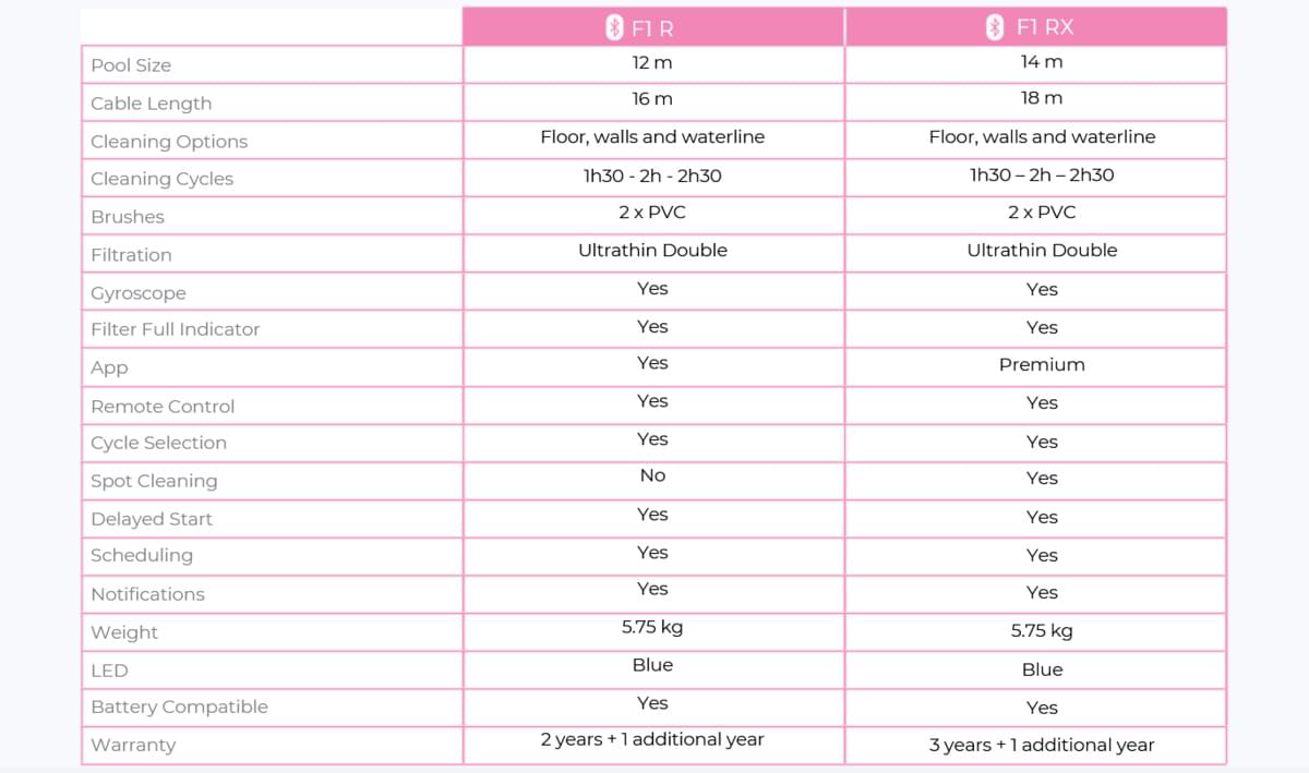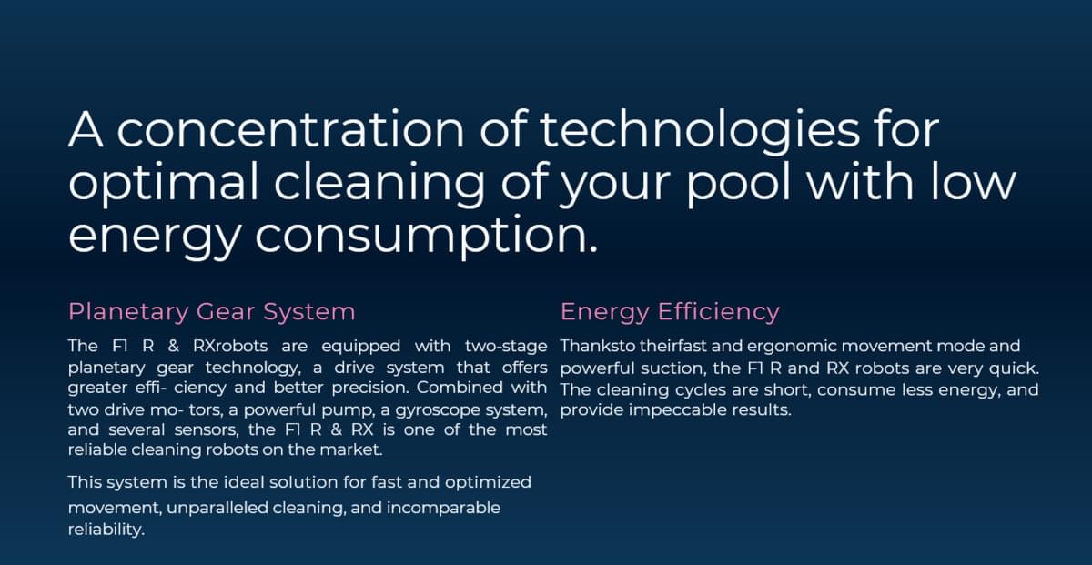 Despite their compact size, the F1 R & RX’s ultramodern design allows them to clean faster and more efficiently while consuming less energy.
