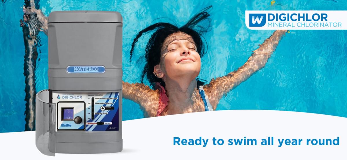 Waterco’s new, energy-efficient Digichlor chlorinates your pool, making it healthy, crystal clear, and ready to swim all year-round. In fact, a Mineral/salt water chlorinated pool requires considerably less attention than a standard chlorinated pool.